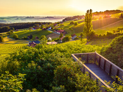 vom Kraftplatz zwischen Himmel und Erde ins Land „einischaun“ – durchatmen und Kräfte sammeln die traumhafte Aussicht genießen – sich an den Rosen meiner Großmutter an diesem besonderen Platz erfreuen – dem sanft plätschernden Brunnen aus Balsaltstein vom Stradner Kogel lauschen.